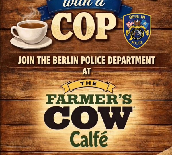 Join the Berlin Police department at The Farmer’s Cow Cafe for from 8-10am