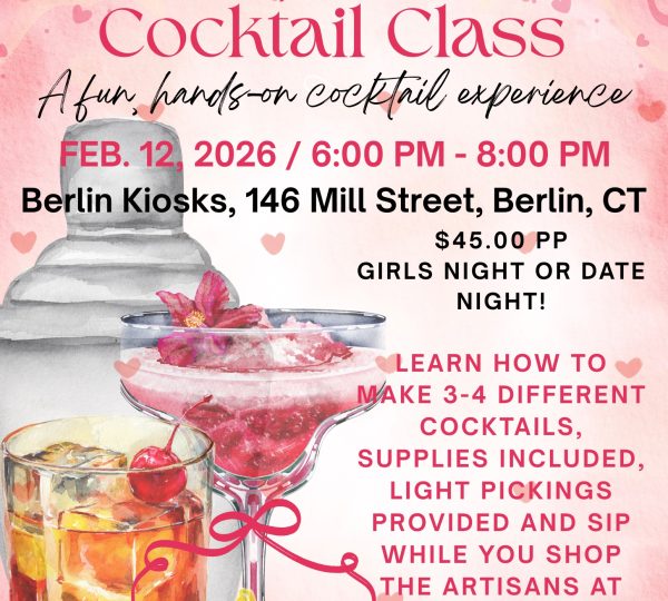 Join the Berlin Kiosks for a Shake, Sip and Shop Cocktail Class on February 12th from 6-8pm, The perfect Galentine’s night out!